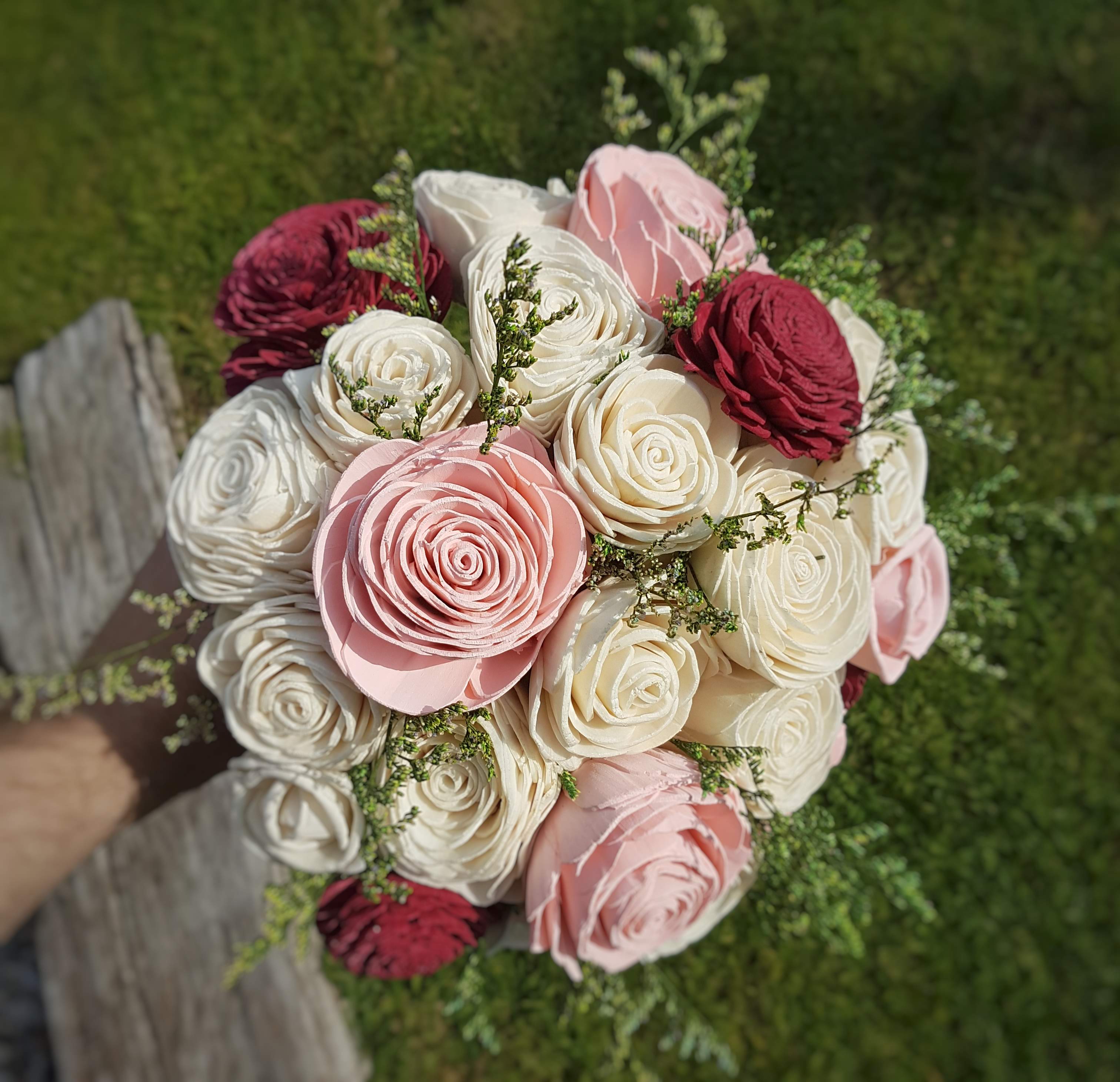 Einzigartige Sträuße aus Holzblumen, die auch nach der Hochzeit als Erinnerung erhalten bleiben.