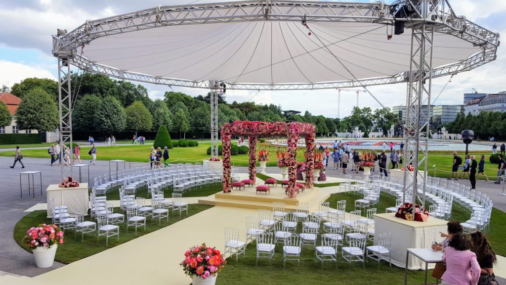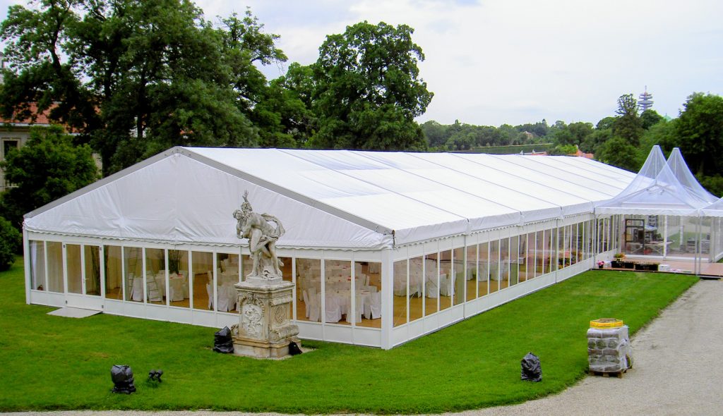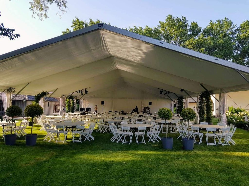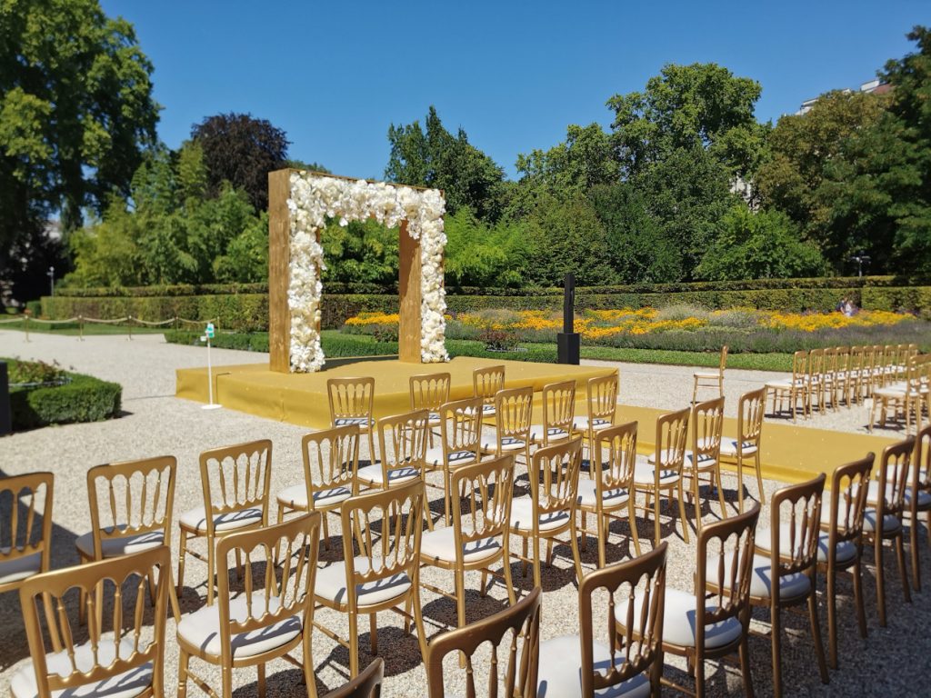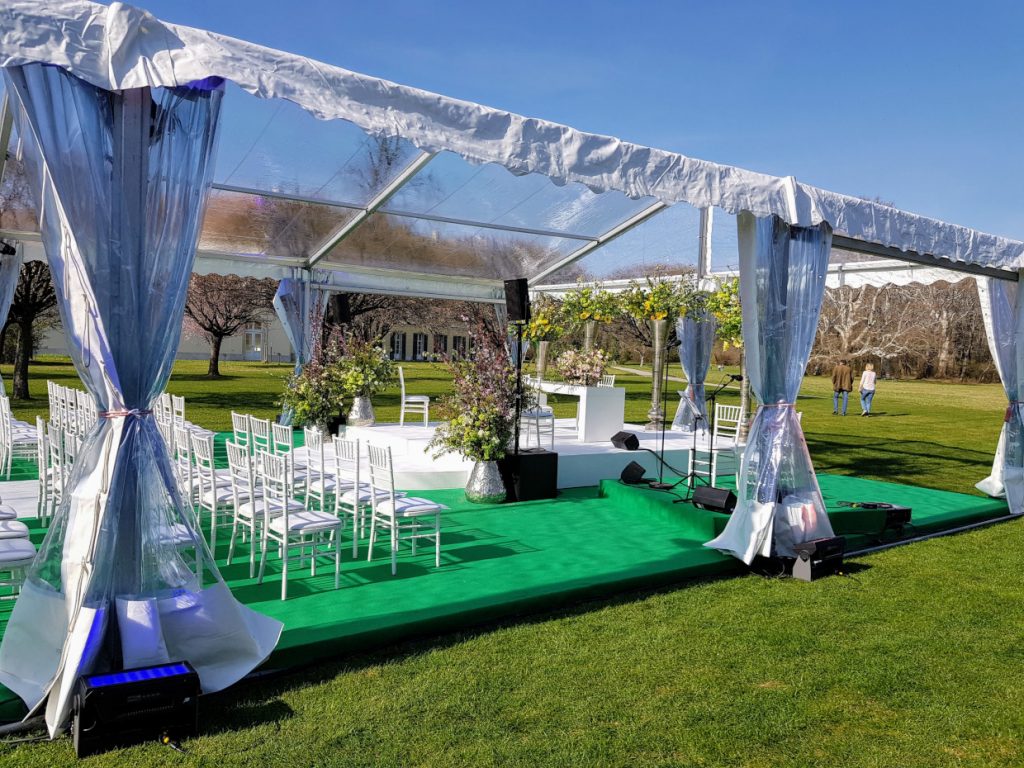 Baldachine und Festzelte mit Stoffinnenhimmel und Echtholz-Tanzboden, hochwertigstes Mobiliar, Stühle, Barhocker, Tische, Wäsche, Heizungen, Licht & Ton - GOMI ist der Komplettausstatter für Ihre Traumhochzeit!